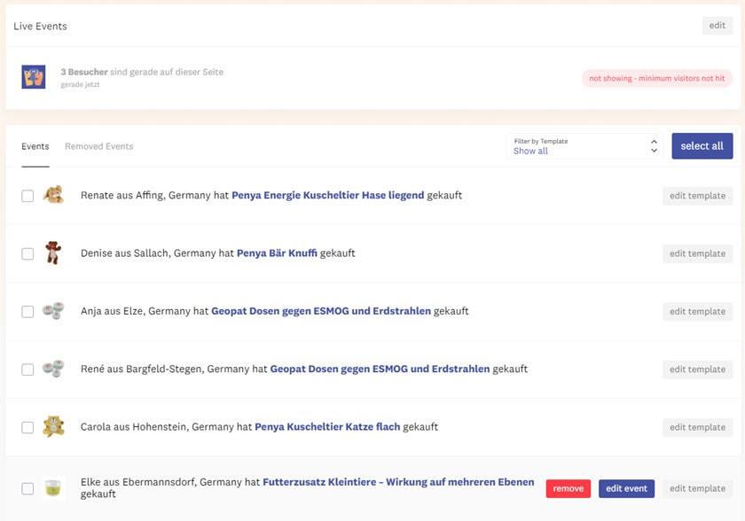 Trustpulse ist eine sehr einfache und in den kleinen Tarifen preiswerte Option, um FOMO Kampagnen auf der Webseite zu zeigen.