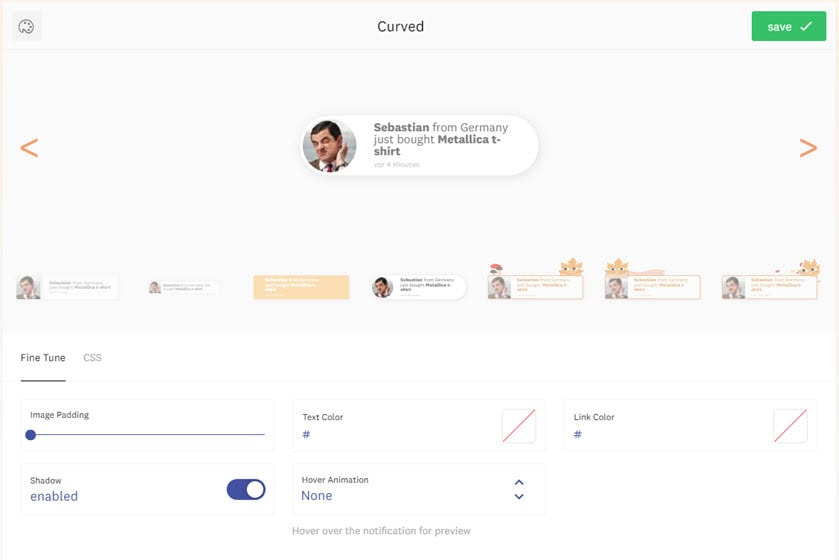 Eine typische Benachrichtigung von Fomo sieht so aus und kann beliebig angepasst werden: