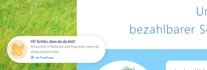Eine typische Benachrichtigung von Trustpulse (im Bild mit Branding) sieht so aus:
