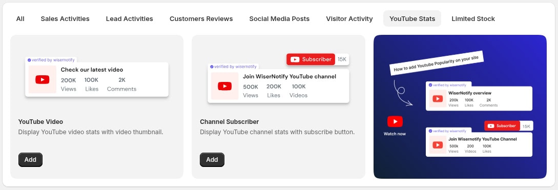 Besonders interessant sind z. B. die YouTube Templates, die Zahlen zum Kanal anzeigen und sogar das sofortige Abonnieren des Kanals zulassen.
