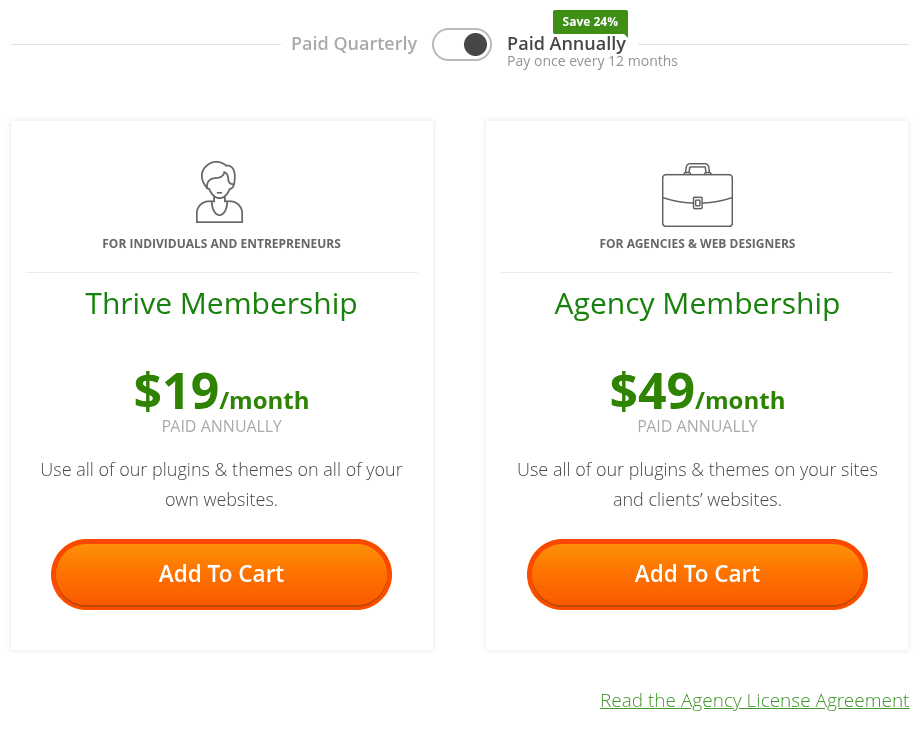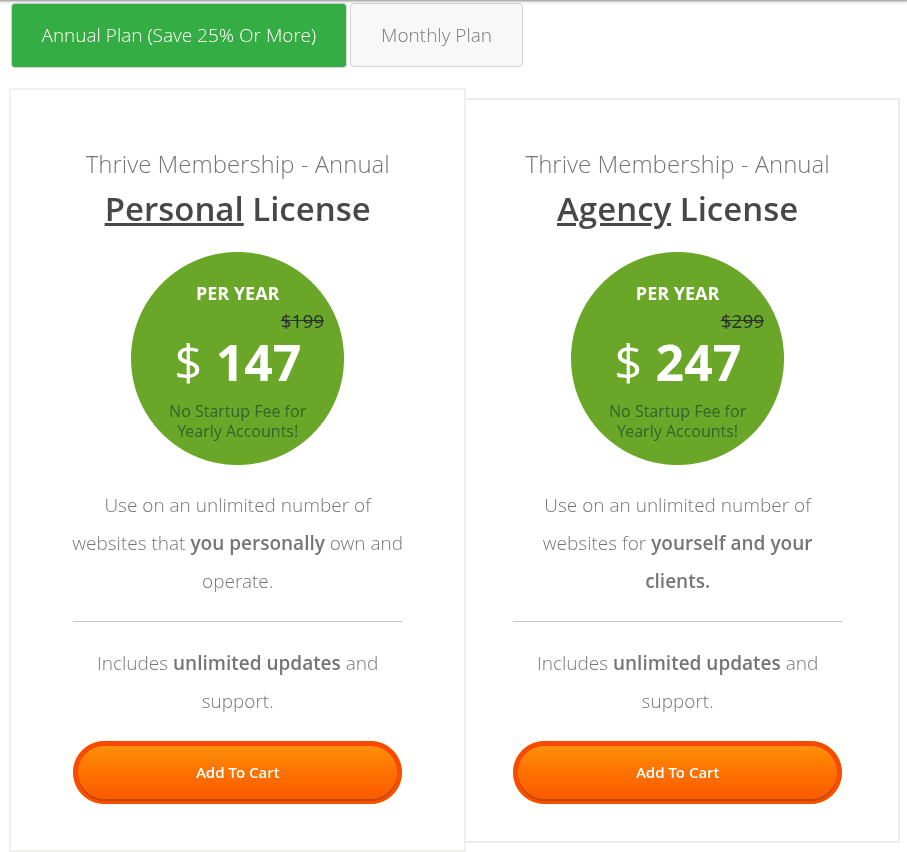 Am 24. September 2015 konnte man auf der Thrive Themes Seite die folgenden Mitgliedschaften abschließen.