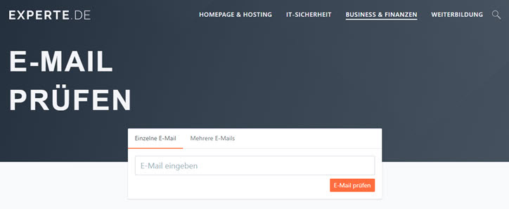 Der Experte .de E-Mail Prüfer ist ein simples und damit auch leicht zu benutzendes Werkzeug, um E-Mail Adressen schnell auf Gültigkeit zu prüfen.
