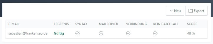 Auf „E-Mail prüfen“ klicken und Ergebnisse abwarten.