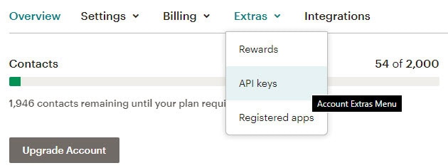 Mailchimp API Key kopieren und verwenden