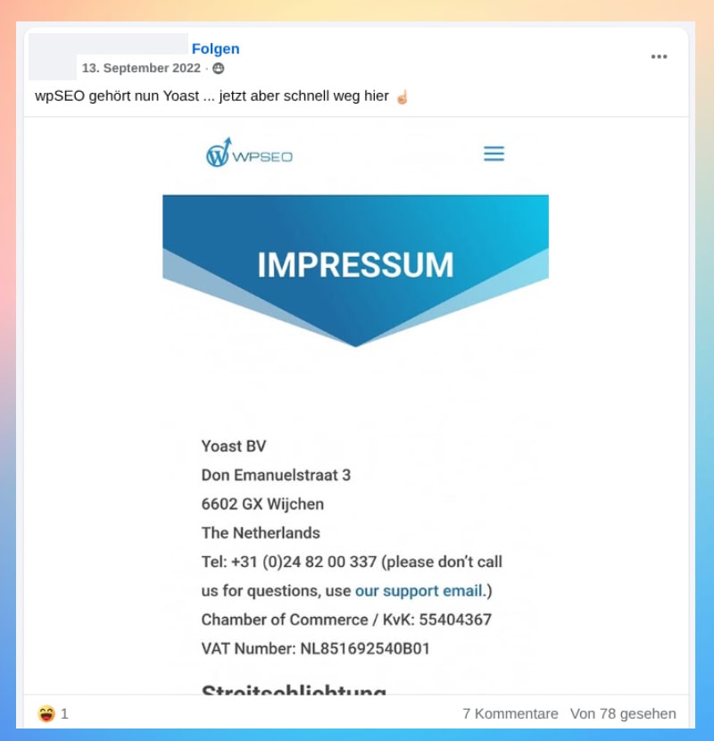 Die Auswahl der passenden Partner war dabei nicht unbedingt leicht. wpSEO wurde nach einer kurzen Phase der Unsicherheit dann von Soeren Eisenschmidt übernommen, in der Branche als Eisy bekannt.
