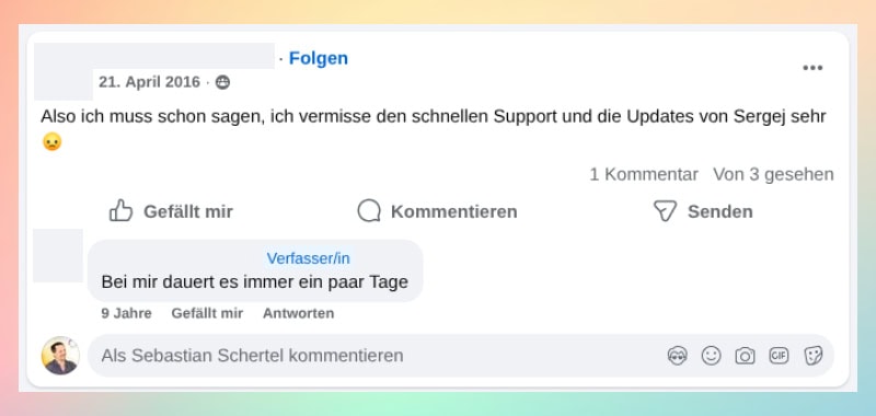 Doch die Unterschiede zwischen dem Vater des Plugins Sergej und der Obhut des neuen Ziehvaters Soeren machten sich nur allzu schnell in der neu gegründeten offiziellen Facebook Gruppe deutlich:
